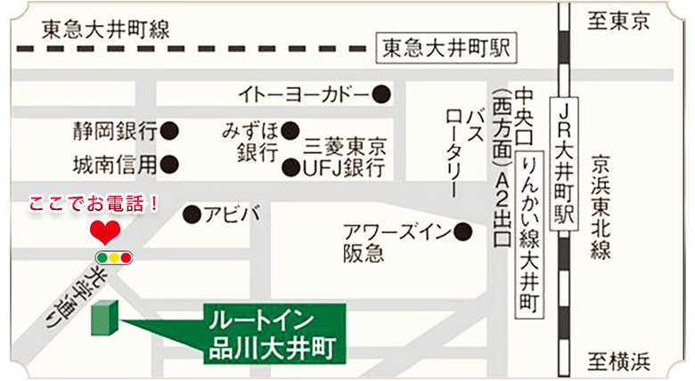 駅を出て「ホテルルートイン品川大井町」反対側に着いたらお電話ください!